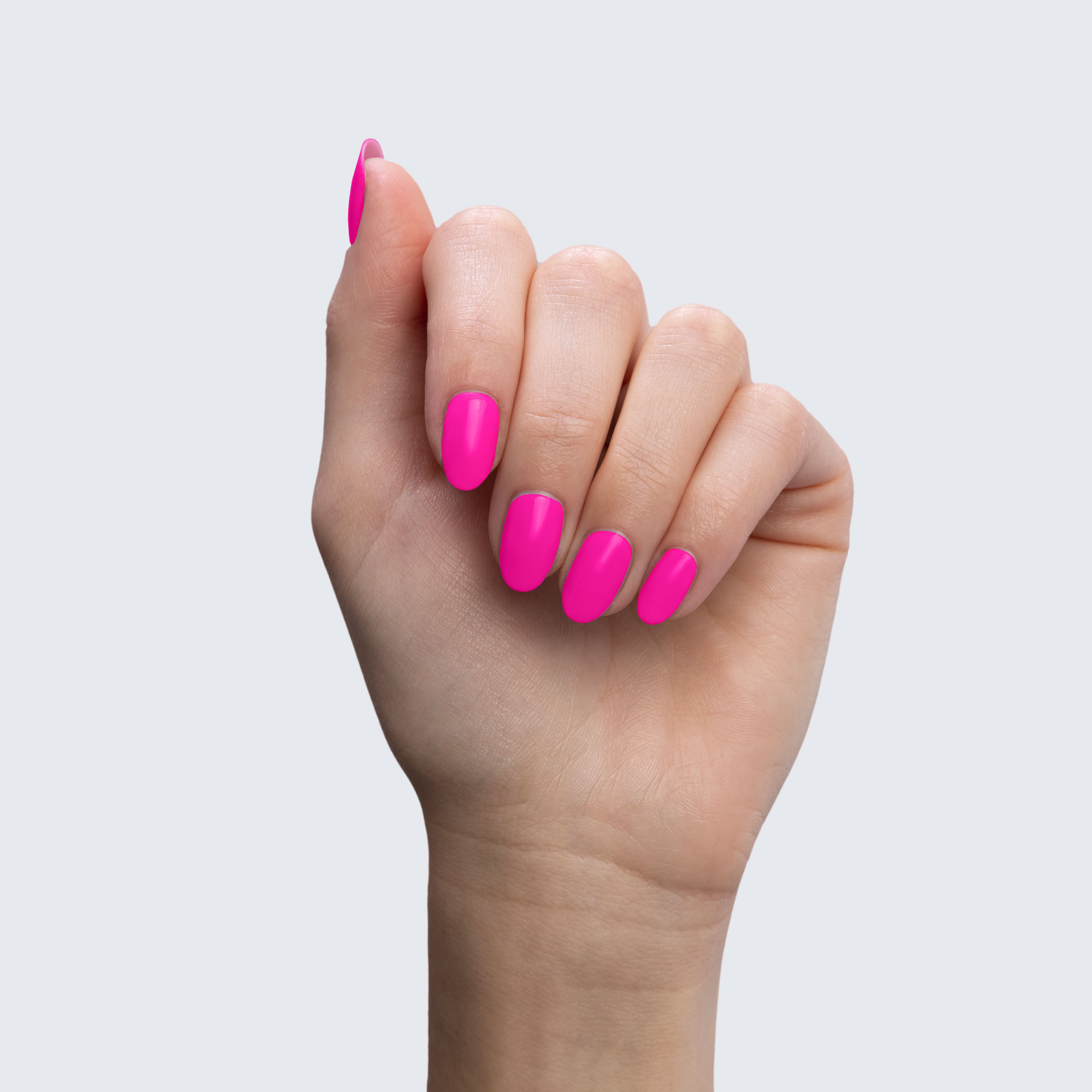 Neon fuchsia. Bright. Pearl finish. Warm undertone. Medium opacity.